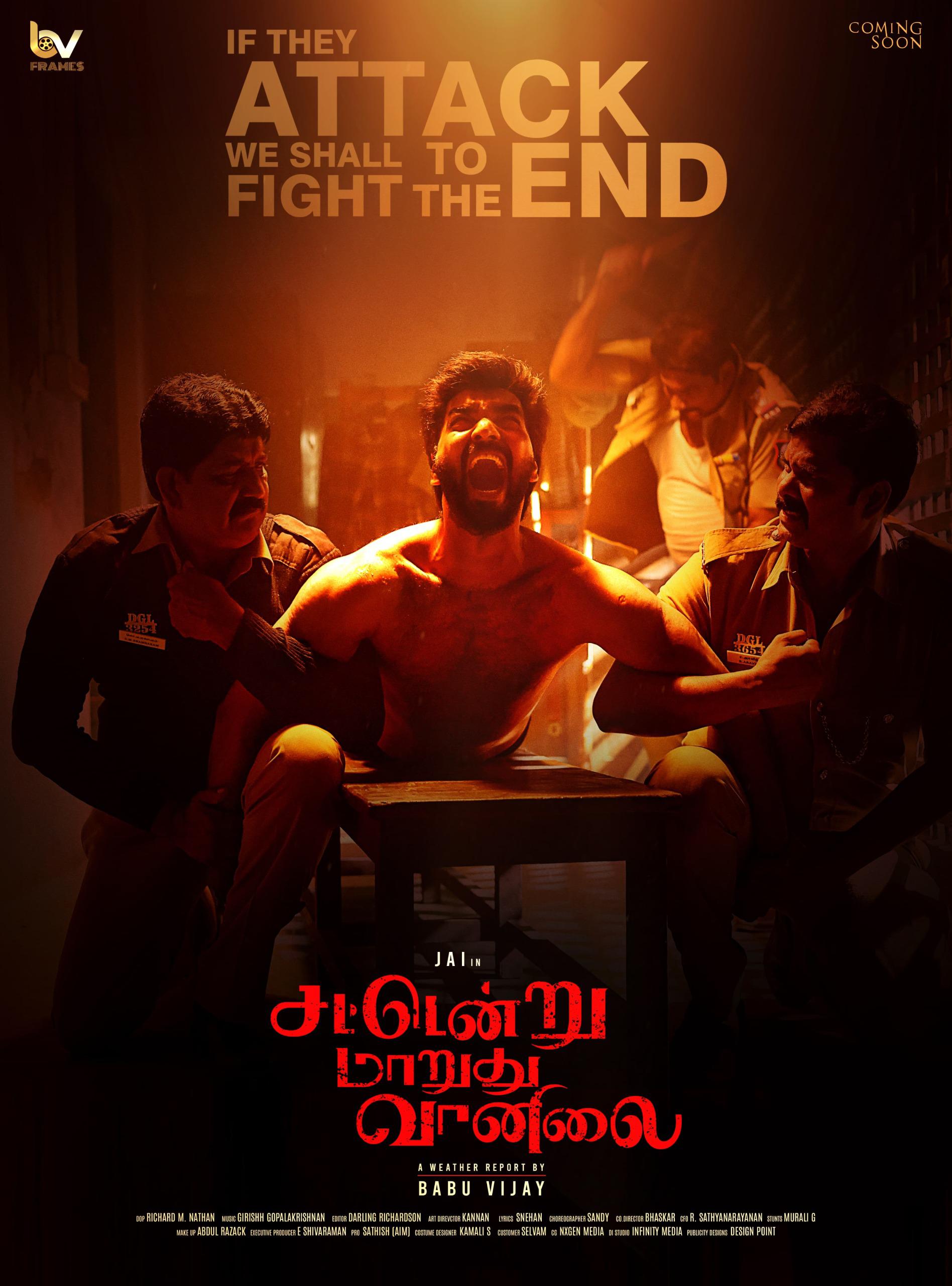 The first look of the romantic thriller “Sattendru Marudhu Vaanilai” starring Jai, produced by BV Frames and directed by Babu Vijay, has been released!!