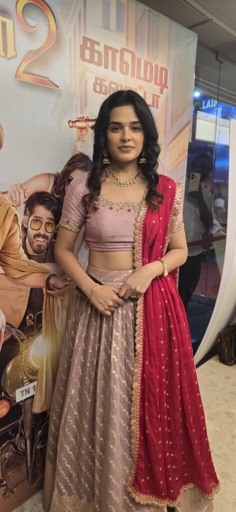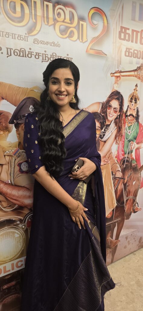 “I have done not two films with music by composer Vidyasagar, but two and a half films. I have acted in the song Kokkara Kokkarako in the film Gilli. This is my second film with director Ezhi. I have joined director Ezhi after almost 13 years. Before this, I acted in a web series called Vindu, and the place where I am going is not far. All the films were serious. It was at that time that director Ezhi invited me for the film Desinguraja 2. After acting seriously like that, I felt so relaxed and happy when I came to the shooting set of this film.