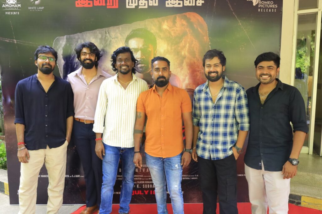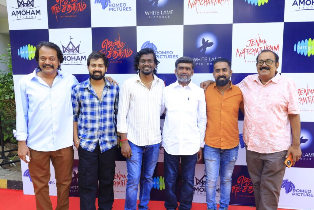 Following the grand success of ‘Oru Nodi’, the same team is collaborating again for yet another commendable film titled Jenma Natchathiram. The film, a horror by its genre, is almost like a prequel to the all-time classic Jenma Natchathiram (the Tamil version of The Omen). The film is directed by Manivarman and is produced by Amoham Studios and Whitelamp Pictures. With the film releasing on July 18, by Romeo Pictures Raahul, the entire cast and crew interacted with press and media for the audio launch held this morning (July 8, 2025) in Chennai.