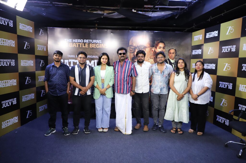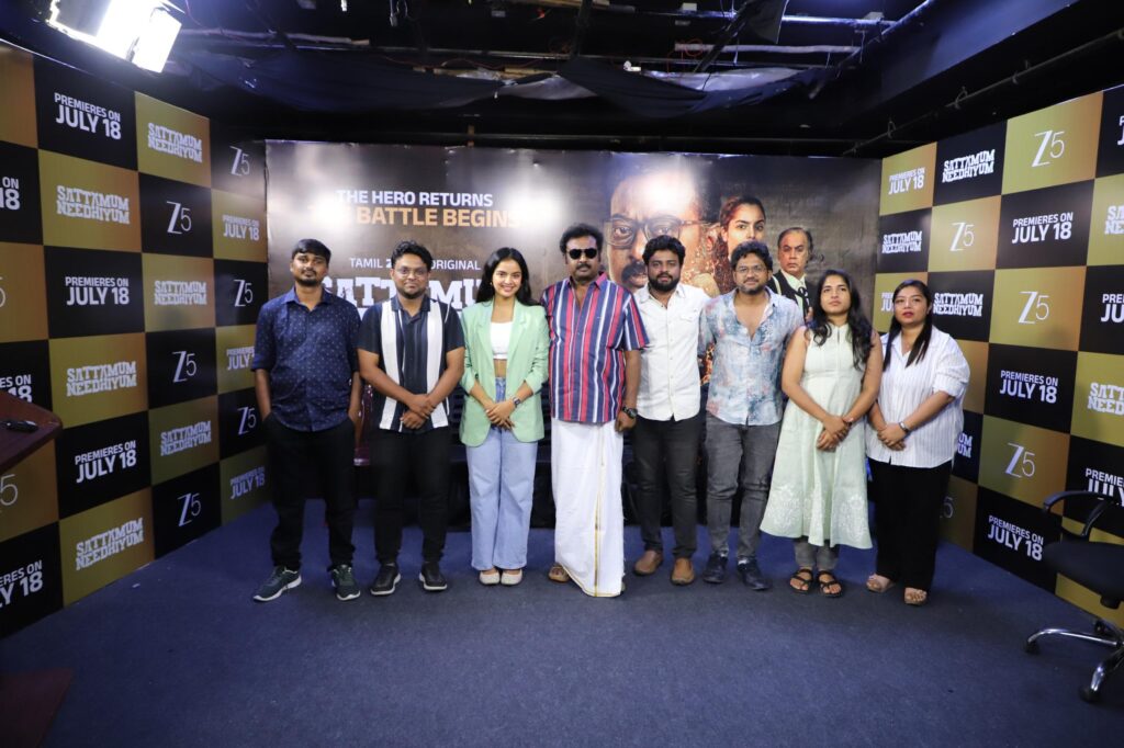India’s leading streaming platform ZEE5 Tamil, after hit Tamil originals like Valunga, Ayali, Koose Munusamy Veerappan, and Aintham Vedam, has announced that it will release its next action-packed court drama series ‘Sattamum Neethiyum’ on July 18, 2025. The announcement was made at a press conference held in Chennai in the presence of the cast and technical team.