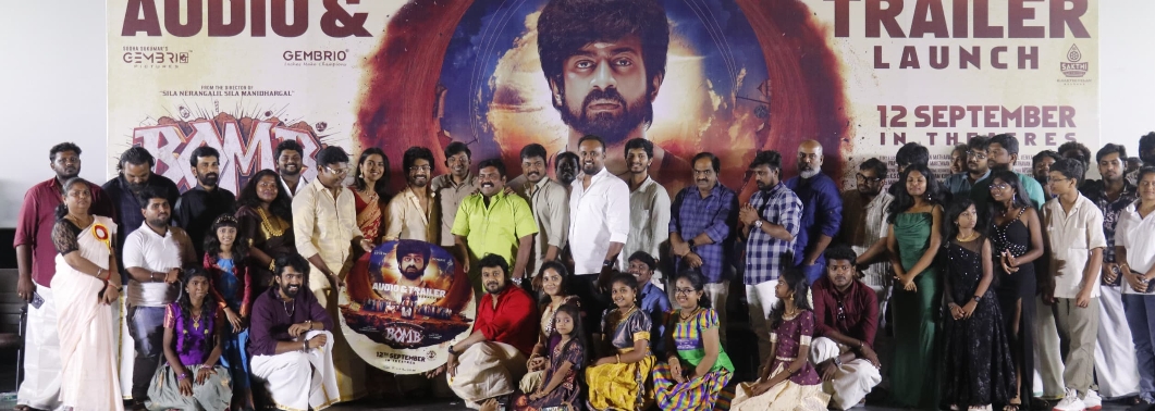 Produced by Sudha Sukumar and Sukumar Balakrishnan on behalf of GEMBRIO PICTURES, Arjun Das, Shwadmika Rajasekhar, Nassar in the lead roles, “Bomb” is a commercial entertainer drama that talks about the quirks of life and directed by Vishal Venkat of “Sila Nerangalil Sila Manidhargal” fame.