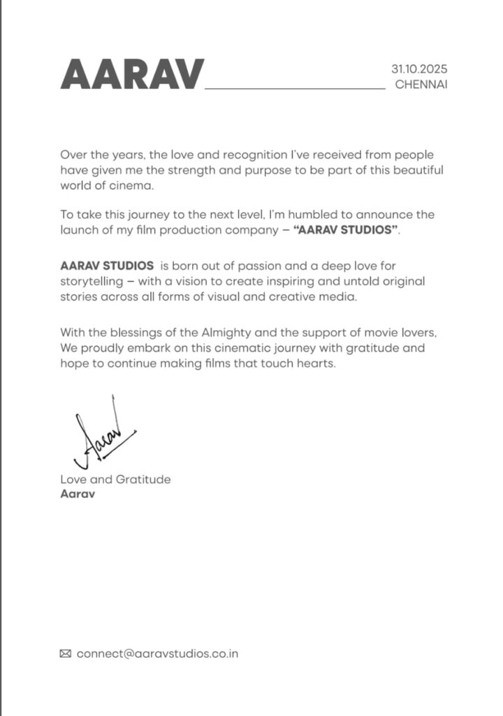 To take this journey to the next level, I’m humbled to announce the launch of my film production company — “AARAV STUDIOS”.