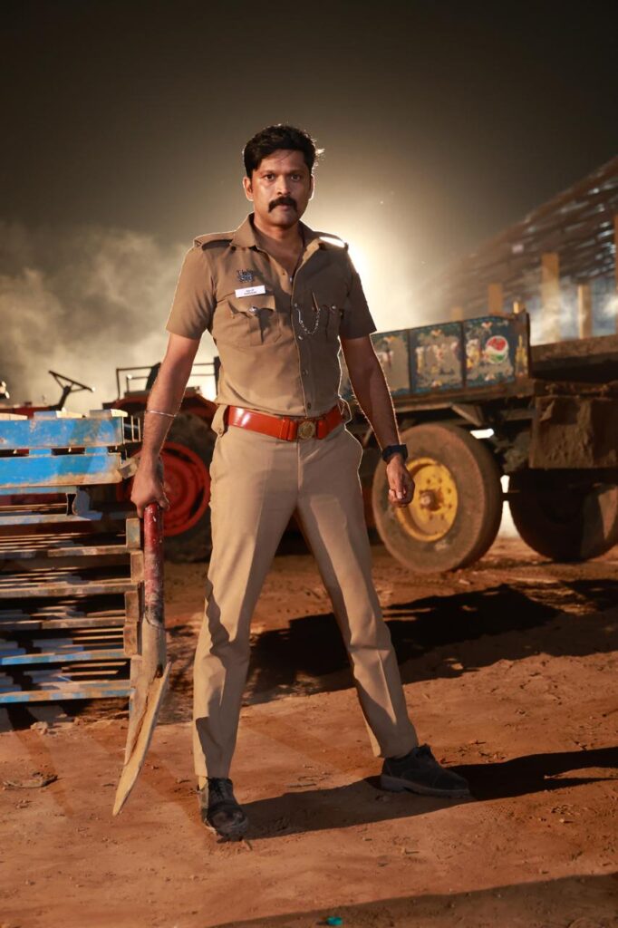 Cut to another scenario, Soundarraja is a cop whose dad (Muthuram) was brutally murdered as he has rubbed the bigwig (Vela Ramamurthy) on the wrong side.