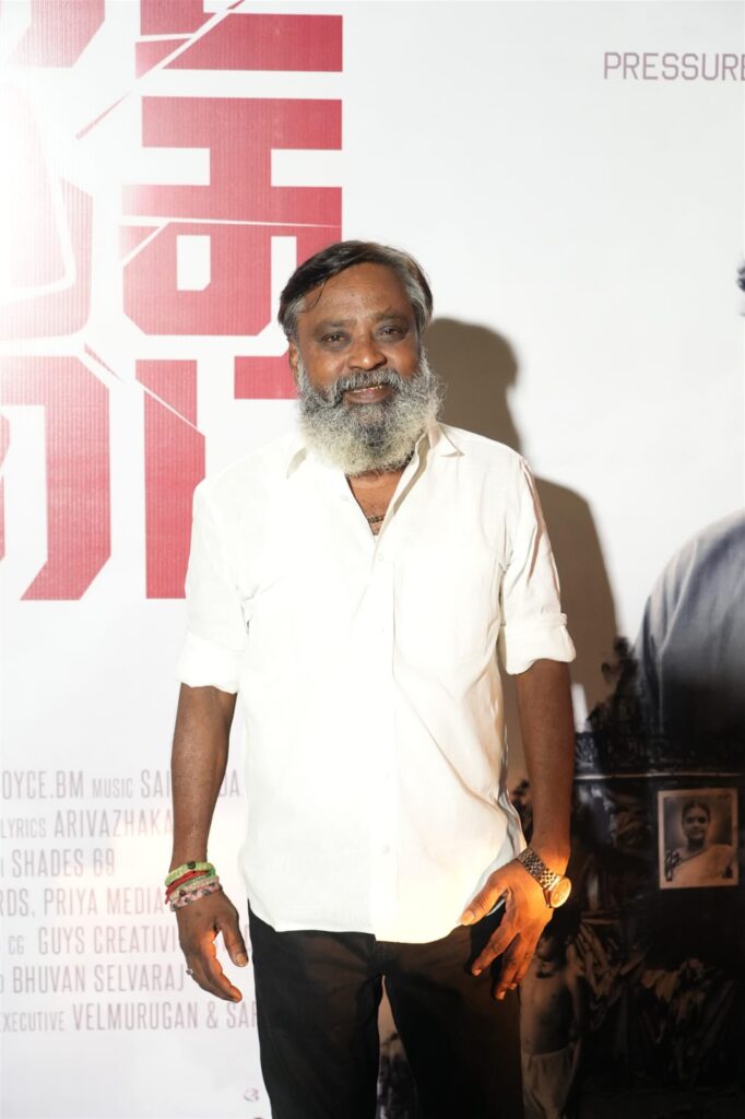 I hope you like our trailer. Chinna team has worked together to make this film. The film Thirukkural, in which I acted, is on YouTube, everyone should watch it. Aruldas Annan has come for us. I worked with him in the film Vikram. I am amazed by his performance. It was a pleasure to work with him. Seeing the black character called K.D., Pari Annan introduced him to Arivazhagan sir. That’s how this opportunity came about. While reading the script, all the details were meticulous. He has shot the film very beautifully. A line in the film that says, “We will rise by trying, we will rise by falling,” is an encouraging line for everyone. Thank you everyone for coming to the screen and watching the film.