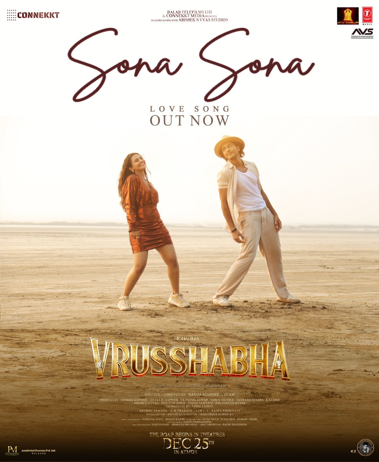 Vrusshabha promises to be an epic cinematic journey blending emotion, grandeur, and action, celebrating the unbreakable bond between a father and son. Shot simultaneously in Malayalam and Telugu, with releases in Kannada and Hindi, Vrusshabha is set to be one of the biggest cinematic events of 2025. Worldwide Release: December 25, 2025