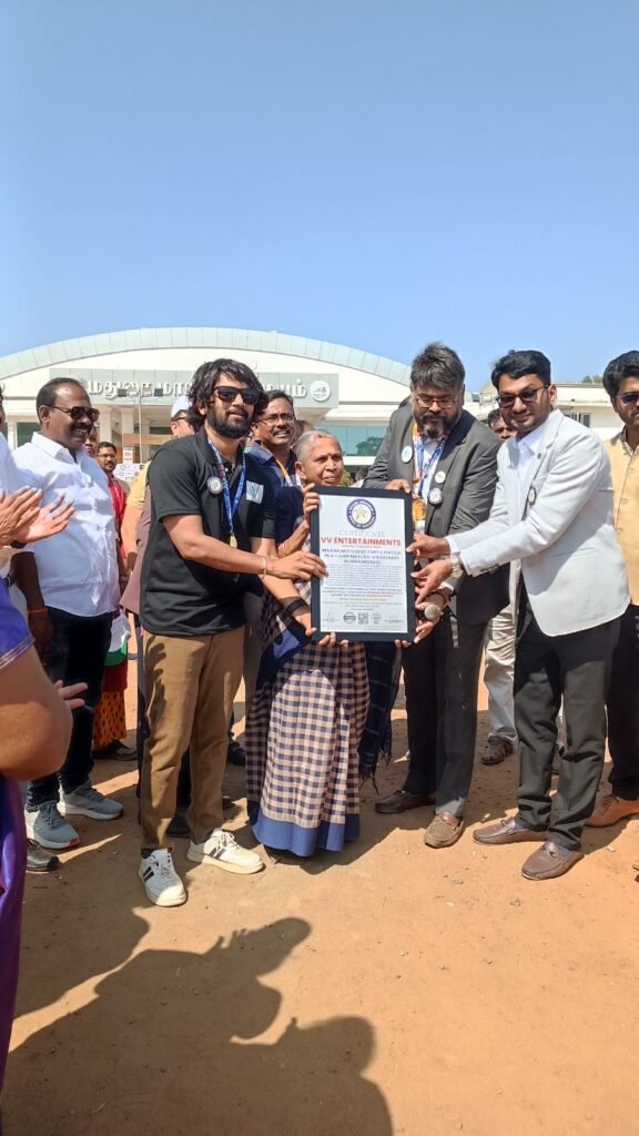 VV Entertainments, led by actor Vijay Vishwa, has previously set several world records, including the human chain forming the image of Sunita Williams, the world record for the largest number of students participating in martial arts, the world record for the largest number of children dressed as deities during the Madurai Chithirai Festival, and the “Stop Violence Against Women” campaign. Continuing this tradition, VV Entertainments undertook a new initiative, “Clean Madurai,” to spread social awareness among the public. A massive human chain was formed as part of this world record attempt. More than 2000 participants, including school students aged 5 to 16 and their parents, enthusiastically participated, bringing pride to Madurai.