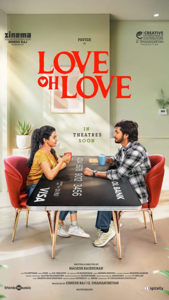 Produced by Zinema Media and Entertainment Ltd, Dinesh Raj, along with Creative Entertainers & Distributors’ G Dhananjheyan, “Love Oh Love” is written and directed by Magesh Rajendran. The film features Pavish Narayan (of Nilavukku Enmel Ennadi Kobam fame) alongside Naga Durga, a popular Telugu YouTube sensation making her Tamil cinema debut.
