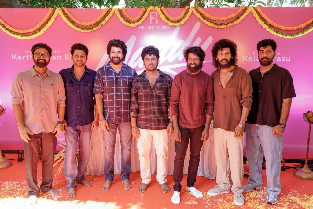 Produced by Roll Time Studios, this new film—currently titled “Movie Title”—officially went on floors today following a special Pooja. The film is being produced by Kalai Arasu. Debutante director Karthikeyan BK is helming the project; notably, he previously served as an associate director under filmmaker Lokesh Kanagaraj.