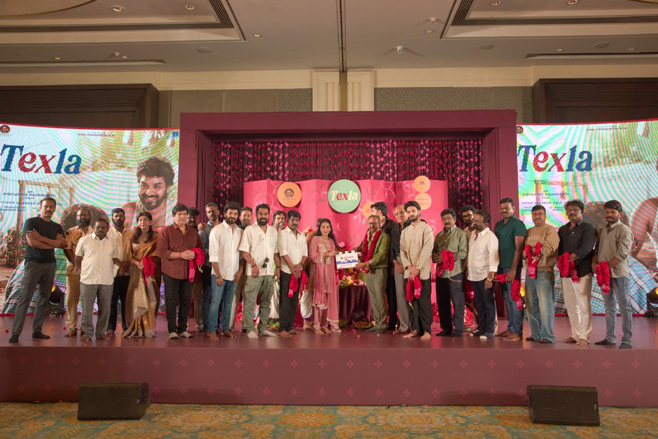 The launch ceremony of the movie ‘Texla’ starring Jai and Suraj Venjaramoodu, directed by Aishwarya Rajinikanth and produced by Kannan Ravi Group on behalf of Kannan Ravi Group, was held in Chennai.