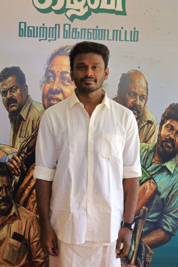 Actor Munishkanth: “I still remember seeing Radhika Sarathkumar ma’am in my village during the shooting of Kizhakku Seemaiyile. At that time, I never imagined that one day I would share screen space with her, and today it has become a reality through this film. I thank our crew’s ‘Thaai Kizhavi’, director Sivakumar Murugesan, for making this happen. This film has brought me a lot of happiness as I have received so many calls from my native place appreciating my work. I also thank Sivakarthikeyan sir for his support.”