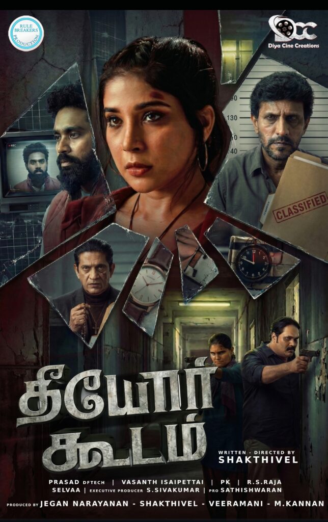 Produced by Jagan Narayanan, Sakthivel, Veeramani, and Kannan under the banners of Rule Breakers Production and Diya Cine Creations, the film Theeyor Koodam is a crime thriller featuring Sakshi Agarwal, Daniel Annie Pope, and Vaiyapuri in lead roles. The film has been written and directed by Sakthivel. Additionally, Sams, Vasanthi, Jasper, Sathya, and Samyuktha play pivotal supporting characters.