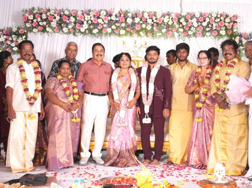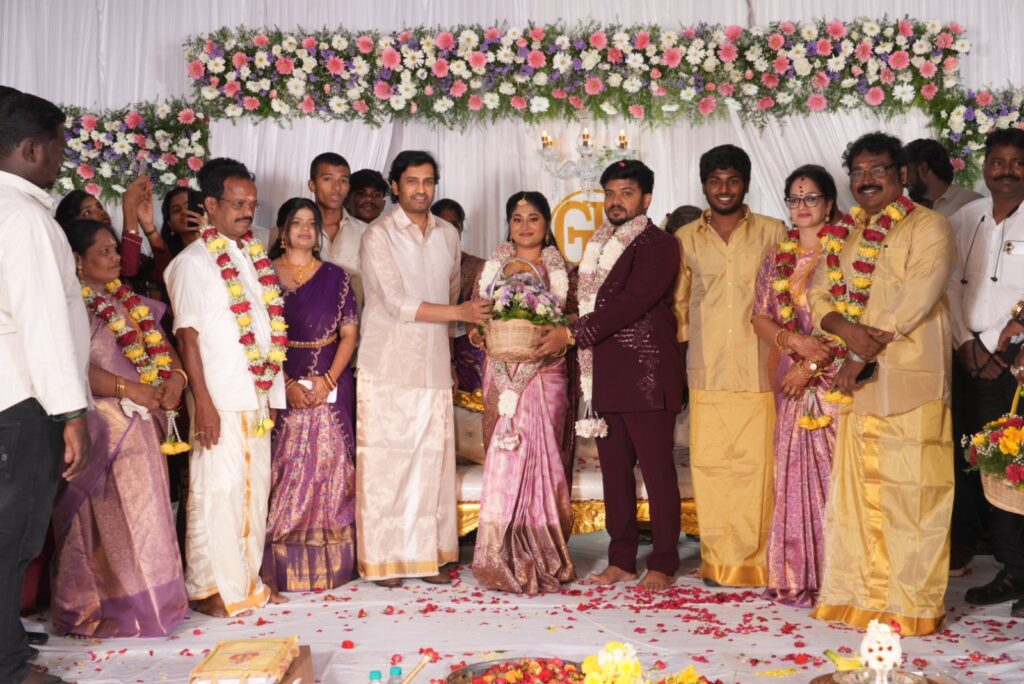 The ceremony was graced by the presence of eminent Tamil personalities and social activists who gathered to bless the couple. Attendees included veteran film artist Sivakumar; “Kaviperarasu” (Emperor of Poetry) Vairamuthu; Justice Kalaiyarasan; Members of Parliament Jagathrakshakan and Thamizhachi Thangapandian; former Minister A.K. Moorthy; President of the Tamil National Movement, P. Maniarasan; businessmen Delta Selvam, Ramji, and Santhanam (IAS); actors Santhanam, Ilavarasu, Redin Kingsley, Aegan, Brigida, Karate Raja, and King Kong; directors R.V. Udayakumar, Kathir, Perarasu, Ezhil, Vasanthabalan, Karu. Palaniappan, Chezhiyan, Nambi, V.M. Senthilkumar, and Ashok Balaji; cinematographer G.A.L. Alagappan; Sivashakti Pandian; Magizhchi T. Manivannan; Pammal Saravanaraja; Nirmal Saravanaraja; Kural Amuthan; Sundaravaradhan; journalists Ekalaiyan and Cartoonist Bala; social activist Arputham Ammal and her son Perarivalan; Pulavar Rathinavelan; and Aaval Ganesan, among others. The special guests were warmly welcomed by Director V. Gowthaman, businessman K. Kannan, producer T. Manivannan, and the budding actor Gowthaman Tamizhalagan—son of V. Gowthaman—among others.